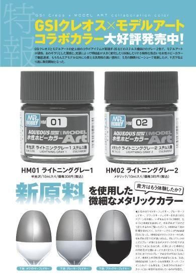 HM02はH8 シルバーともHSM01 スーパーファインシルバーとも異なる、これまでの水性ホビーカラーにない新原料を使用しているのが特徴だ。角度や光源によって見え方が変化する独特のグレーを実現した。